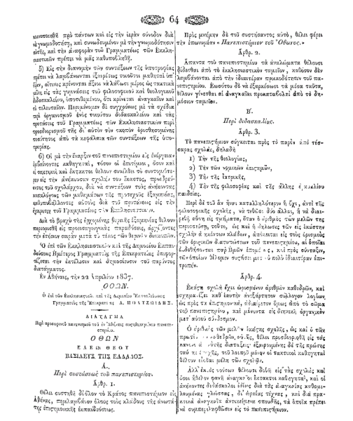 Το Πανεπιστήμιο των Αθηνών, που θα περιελάμβανε όλους τους κλάδους της ανωτάτης επιστημονικής εκπαιδεύσεως, θα έφερε την επωνυμία «Πανεπιστήμιον του Όθωνος» προς μνήμην του συστήσαντος αυτό.