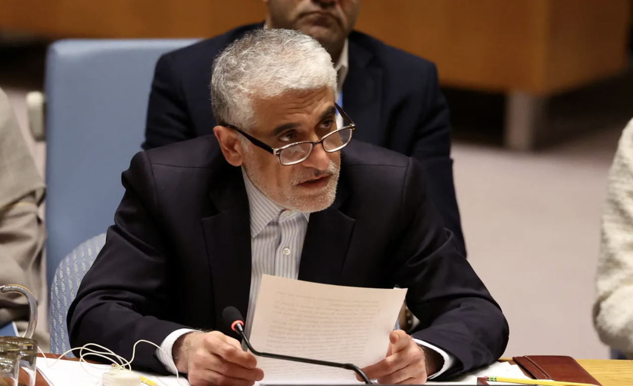 Σε επιστολή του προς τον Γενικό Γραμματέα του ΟΗΕ και τον πρόεδρο του Συμβουλίου Ασφαλείας, ο μόνιμος αντιπρόσωπος του Ιράν στον ΟΗΕ Αμίρ Σάιντ Ιραβανί (φωτογραφία αρχείου, επάνω, από το Reuters) αναφέρει ότι ο εκπρόσωπος των ΗΠΑ ισχυρίστηκε πως ο Γενικός Γραμματέας είχε «επιβεβαιώσει» ότι η Ισλαμική Δημοκρατία αποκρύπτει στρατιωτικό υλικό σε νοσοκομεία, σχολεία και κατοικημένες περιοχές και χρησιμοποιεί αμάχους για προπαγανδιστικούς σκοπούς.