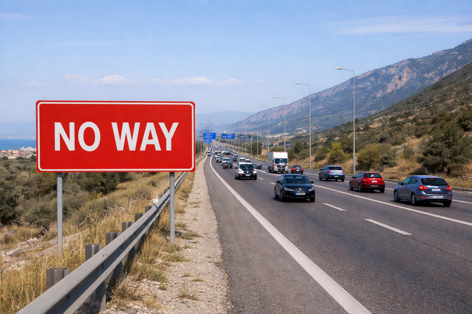 Ειδικότερα, οι υπεύθυνοι λειτουργίας των αυτοκινητόδρομων τοποθετούν μια κόκκινη πινακίδα που γράφει «NO WAY», ώστε να γίνεται αντιληπτό ότι απαγορεύεται η κίνηση στο συγκεκριμένο κομμάτι του δρόμου.