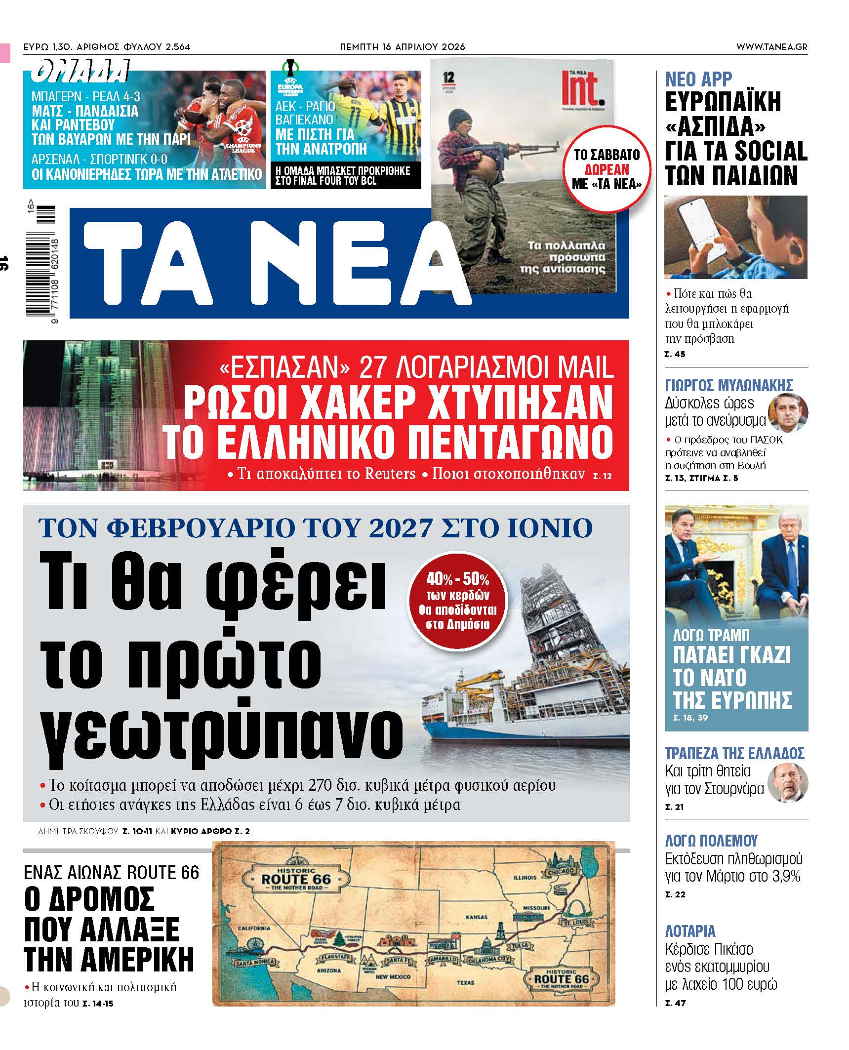 - Στα «ΝΕΑ» της Πέμπτης: Τι θα φέρει το πρώτο γεωτρύπανο