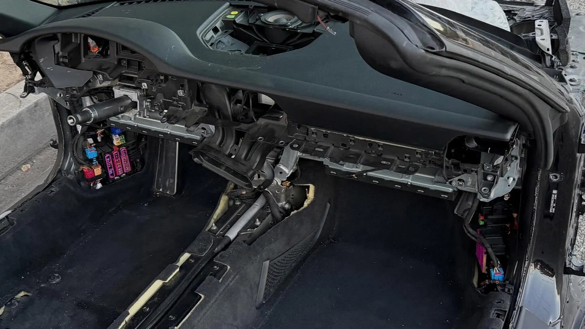 Οι εικόνες που έκαναν το γύρο του Διαδικτύου, δείχνουν μονάχα το σκελετό του οχήματος, καθώς είχαν αφαιρέσει τη μηχανή, όλο το μπροστινό καπό, τα φωτιστικά σώματα, το τιμόνι και τον πίνακα οργάνων, ακόμα και τους προφυλακτήρες.