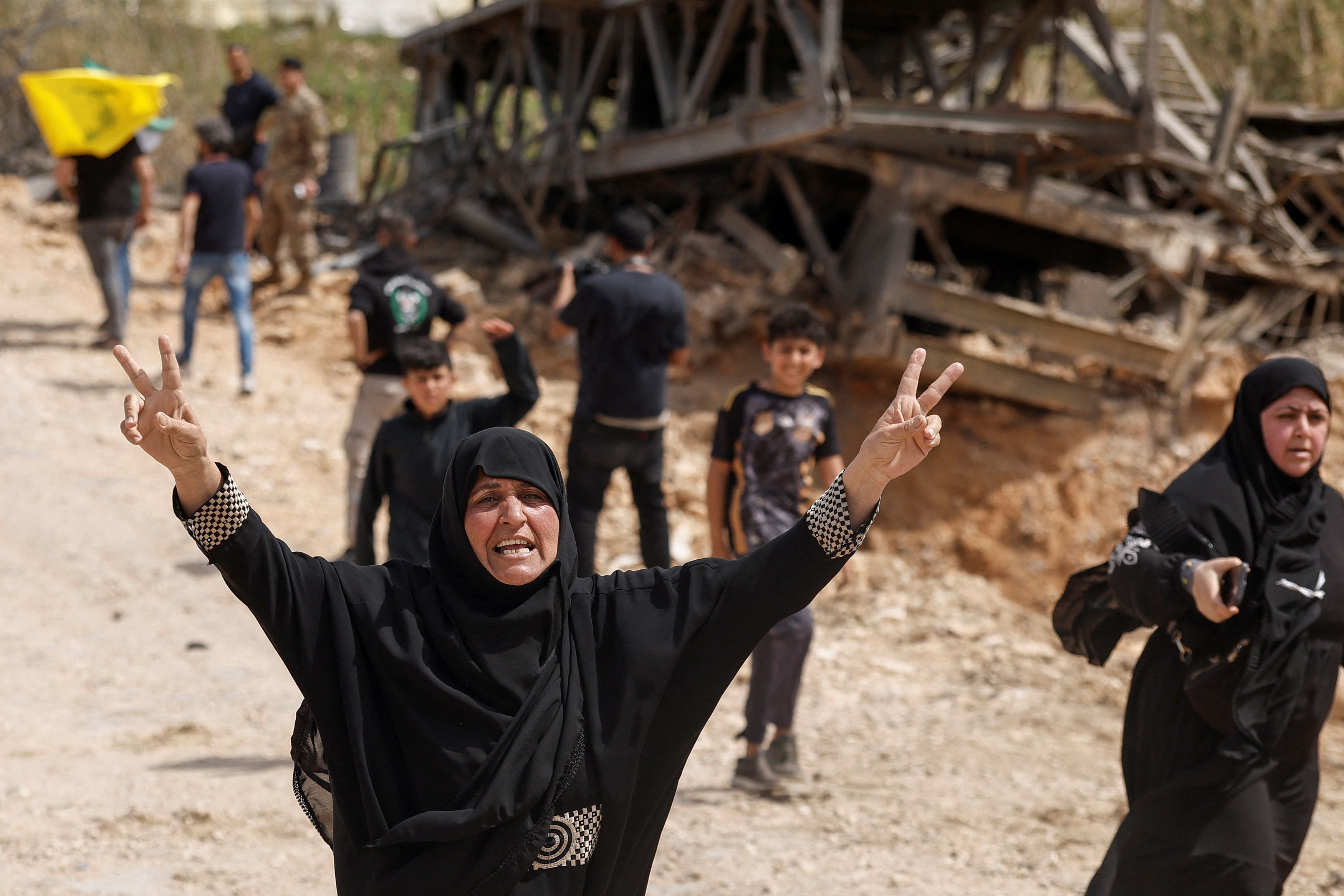 Μικρά παιδιά βγάζουν τα χέρια τους από παράθυρα αυτοκινήτων και κάνουν το σήμα της νίκης, καθώς περνούν από μια αυτοσχέδια γέφυρα που κατασκευάστηκε τη νύχτα στον ποταμό Λιτάνι, μετά την ανακοίνωση της κατάπαυσης του πυρός στον Λίβανο. Μπροστά τους όμως εκτείνονται βομβαρδισμένα ερείπια και μια σκληρή πραγματικότητα.
