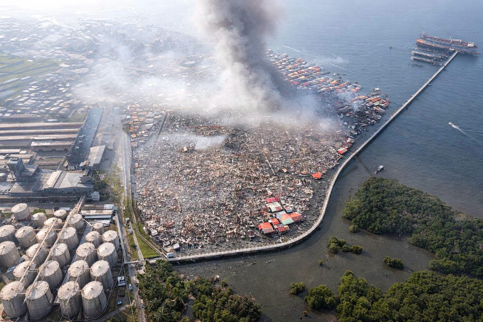 «Η πυρκαγιά εξαπλώθηκε σε περίπου 1.000 πλωτές κατοικίες, καλύπτοντας μια συνολική επιφάνεια 40 στρεμμάτων. Τα σπίτια καταστράφηκαν ολοκληρωτικά», ανέφερε σήμερα η ανακοίνωση της πυροσβεστικής.