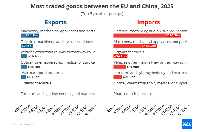 Παρά τις παγκόσμιες εντάσεις και τον εμπορικό πόλεμο του Τραμπ το 2025, το εμπόριο της Ευρωπαϊκής Ένωσης με την Κίνα παρέμεινε ισχυρό πέρυσι.