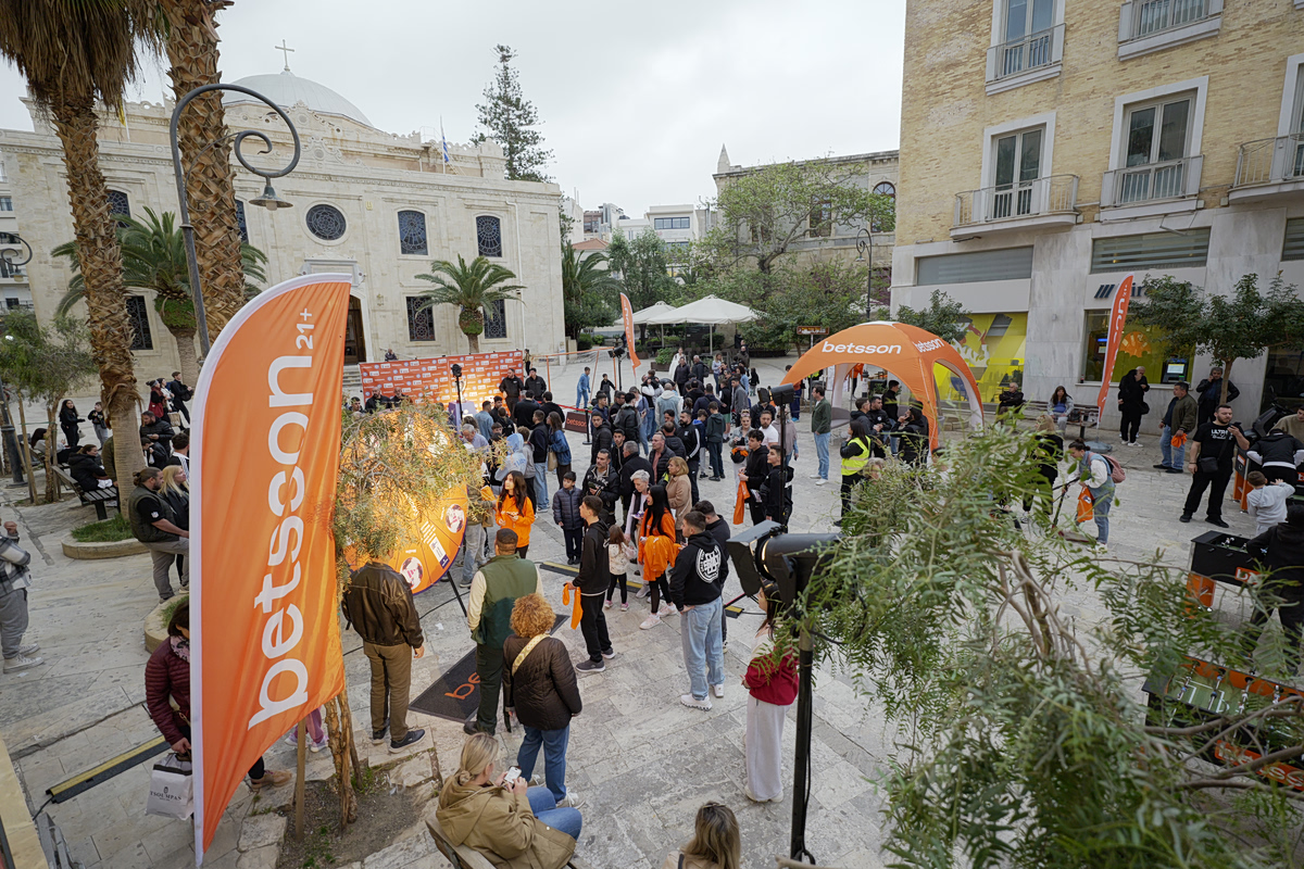 Το ειδικά διαμορφωμένο Fan Zone της Betsson, μπροστά από τον Ιερό Ναό του Αγίου Τίτου, αποτέλεσε σημείο συνάντησης και διασκέδασης, με διαδραστικά παιχνίδια, challenges και πολλές εκπλήξεις. Οι επισκέπτες είχαν την ευκαιρία να δοκιμάσουν τις ποδοσφαιρικές τους δεξιότητες και να μπουν για τα καλά στο κλίμα του μεγάλου τελικού.