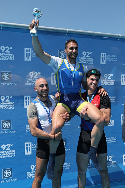 Στο αγώνισμα του το σκιφ ανδρών αναδείχθηκε πρωταθλητής κερδίζοντας τον χάλκινο Ολυμπιονίκη στο Παρίσι, Αντώνη Παπακωνσταντίνου (ΕΝΟΑ) που ήταν δεύτερος και τον Παναγιώτη Μακρυγιάννη (ΝΟ Κοζάνης) που πήρε την τρίτη θέση.