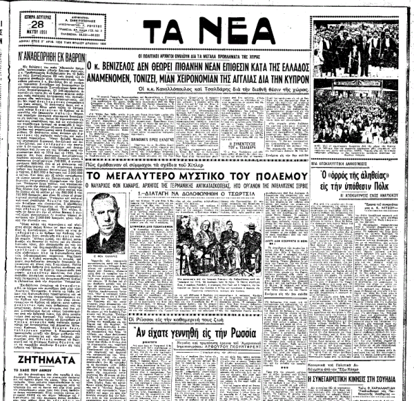 «ΤΑ ΝΕΑ», 28.5.1951, Ιστορικό Αρχείο «ΤΟ ΒΗΜΑ» & «ΤΑ ΝΕΑ»