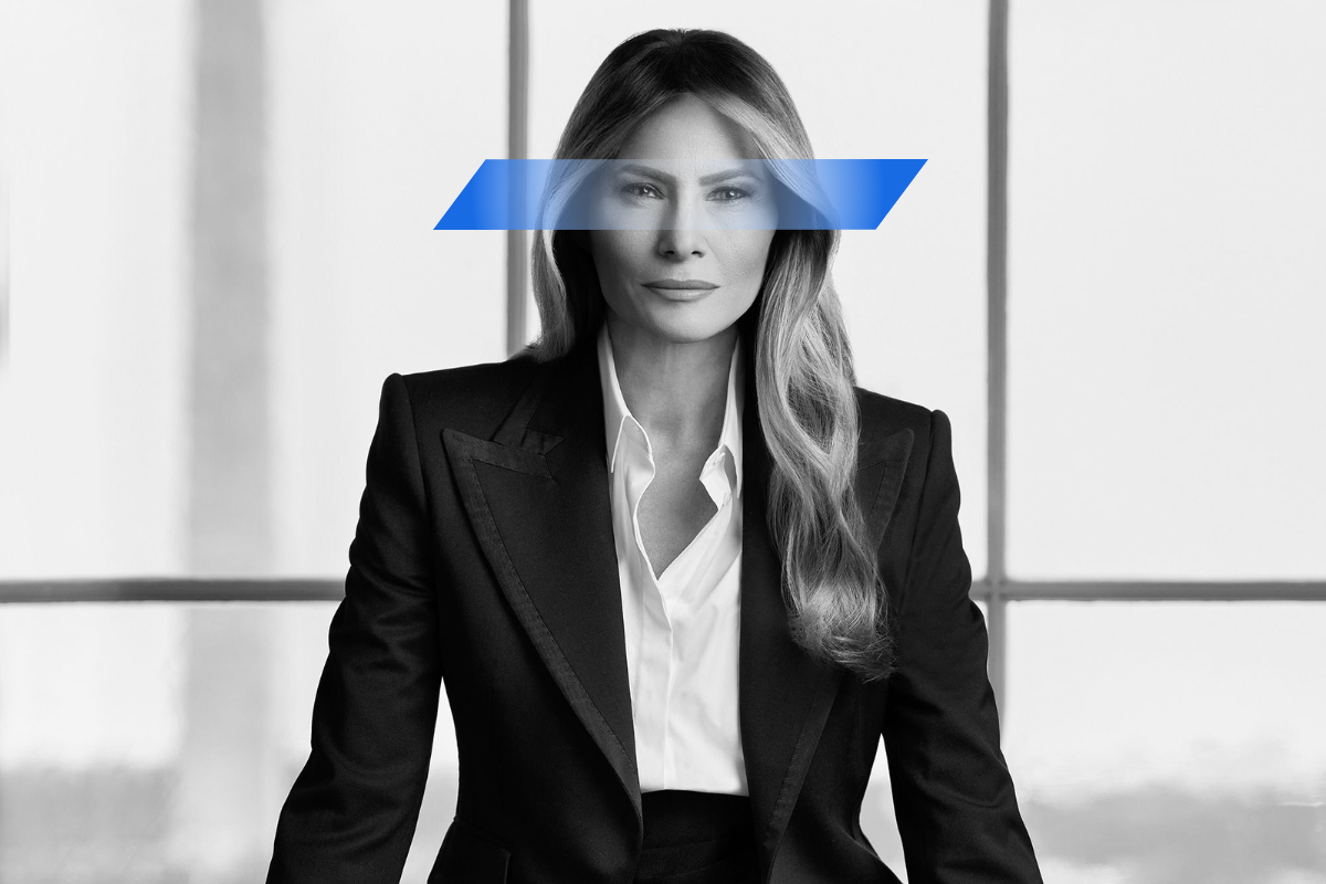 «Στην ασπρόμαυρη φωτογραφία της Ρετζίν Μαχό, η Mελάνια, με το Μνημείο της Ουάσινγκτον πίσω της, ακουμπά τα δάχτυλά της σε ένα μαύρο γραφείο και κοιτάζει την κάμερα σαν να λέει ‘απολύεσαι’. Η Mελάνια έμοιαζε περισσότερο σαν να ήταν σε ένα επεισόδιο του The Apprentice, παρά να αναλάμβανε τον ρόλο της Πρώτης Κυρίας των ΗΠΑ».