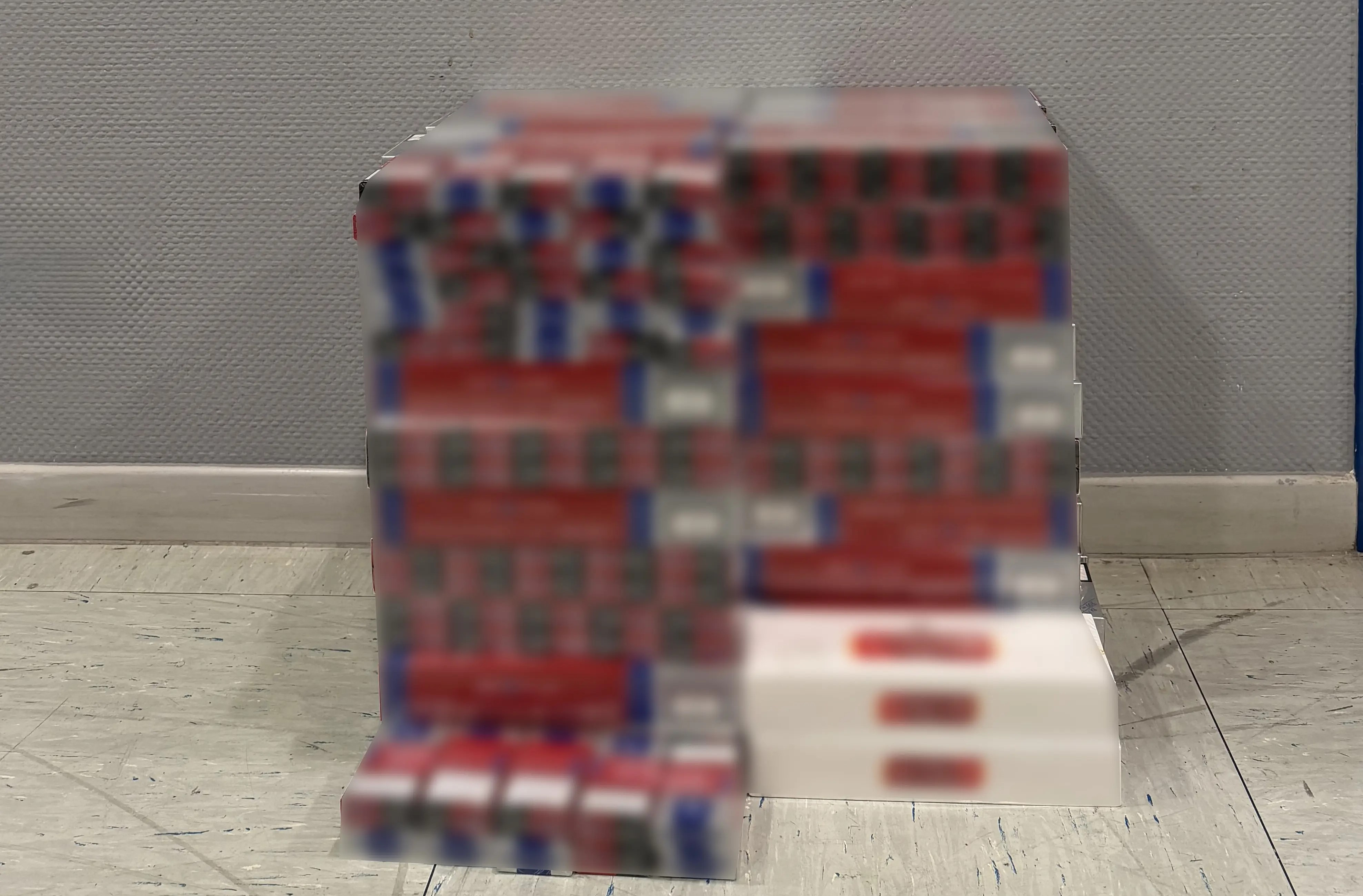 Κατά τον έλεγχο εντός των αποσκευών του βρέθηκαν και κατασχέθηκαν 7.400 πακέτα τσιγάρα χωρίς την ενδεικτική ταινία φόρου κατανάλωσης.