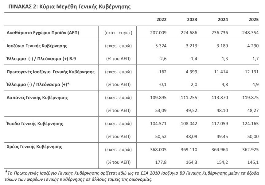 Το πρωτογενές ισοζύγιο είχε περάσει σε θετικό έδαφος από το 2023 (2,0% του ΑΕΠ), μετά από οριακό έλλειμμα το 2022 (-0,1%).