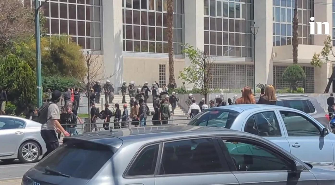 Ένταση έξω από το Εφετείο στη λεωφόρο Αλεξάνδρας, όταν ομάδα συγκεντρωμένων επιχείρησε να μετακινήσει τα κιγκλιδώματα και να περάσει στο χώρο μπροστά από την αίθουσα.