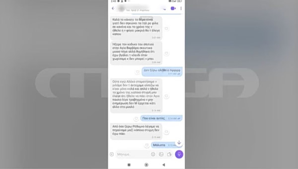 Όπως αποκαλύπτει το MEGA, ο δράστης έστελνε μηνύματα στον αδερφό της κοπέλας αφού είχε χαθεί. Την Δευτέρα τα ξημερώματα από τις πέντε η ώρα το πρωί του έστελνε μηνύματα να τον ρωτήσει τι ακριβώς έγινε, αν την έχουν βρει μήπως έχει πάει σε κανένα μοναστήρι γιατί λέγανε να πάνε σε ένα μοναστήρι στο Ρέθυμνο μαζί.