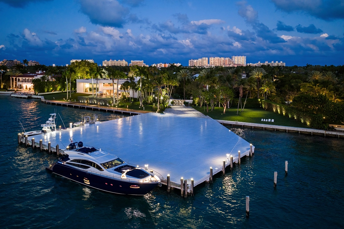 Η έκταση των 2,3 στρεμμάτων βρίσκεται «πάνω» στη θάλασσα, με θέα τον Κόλπο Μπισκέιν της Φλόριντα, ενώ διαθέτει μια τσιμεντένια πλατφόρμα που λειτουργεί τόσο ως ελικοδρόμιο όσο κι ως χώρος πρόσδεσης σκαφών.