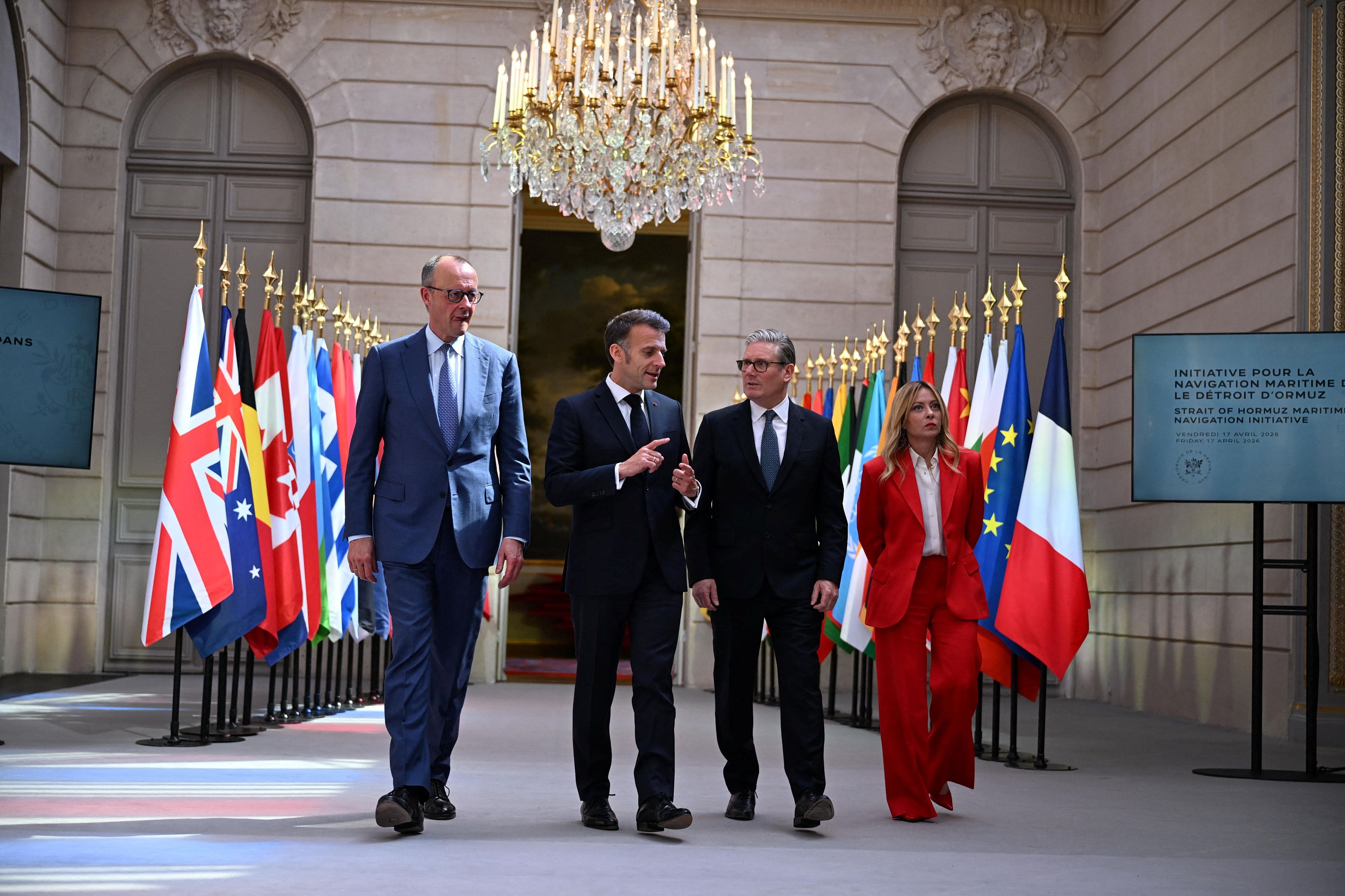 Στις 17 Απριλίου, στο Παρίσι, οι ηγέτες του Ηνωμένου Βασιλείου και της Γαλλίας, Κίρ Σταρμερ και Εμανουέλ Μακρόν, πλαισιωμένοι από τους Γερμανούς και Ιταλούς ομολόγους τους Φρίντριχ Μερτς και Τζιόρτζια Μελόνι, συνδιεύθυναν μια διάσκεψη για τη ναυσιπλοΐα στο Στενό του Ορμούζ. Σε αυτούς προστέθηκαν 49 άλλες χώρες, με περισσότερα από τα μισά κράτη μέλη της ΕΕ να είναι παρόντα μαζί με εκπροσώπους θεσμικών οργάνων της ΕΕ και διεθνών οργανισμών.