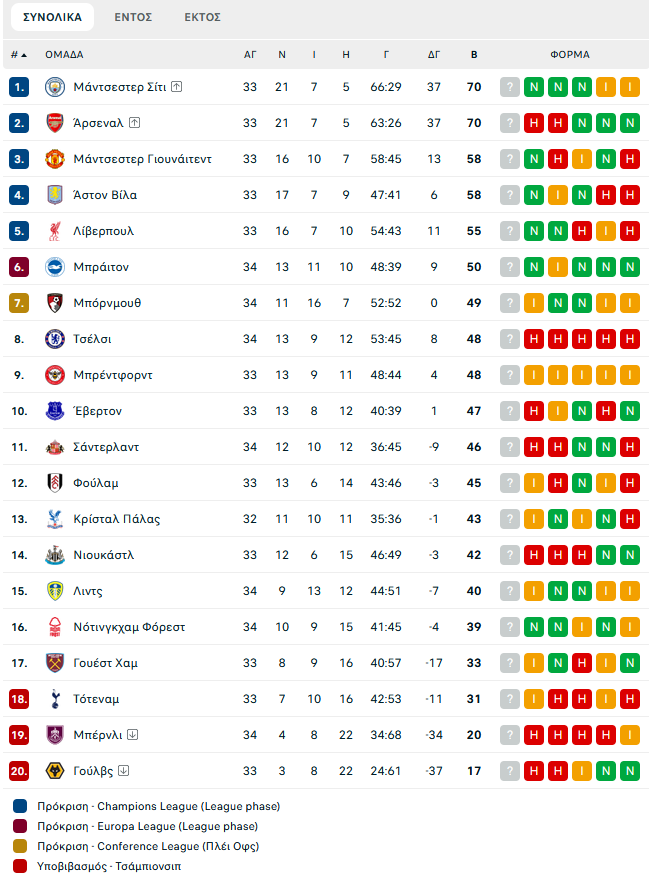 Τα αποτελέσματα και το υπόλοιπο πρόγραμμα της 34ης αγωνιστικής: