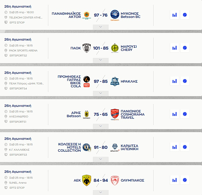 Τα αποτελέσματα της 26ης αγωνιστικής της Stoiximan GBL