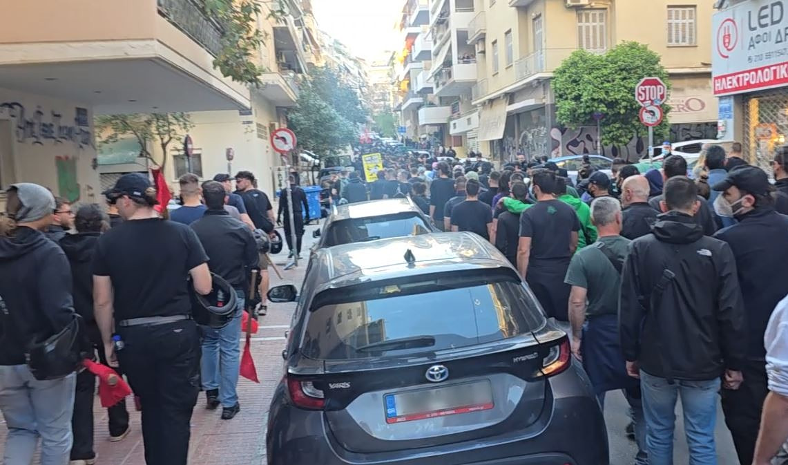 Μια αντιφασιστική πορεία εκτυλίχθηκε στους δρόμους των Αμπελοκήπων ενάντια στο άνοιγμα γραφείων του Εθνικού Μετώπου, από συλλογικότητες, κόμματα και αντιφασιστικές οργανώσεις.