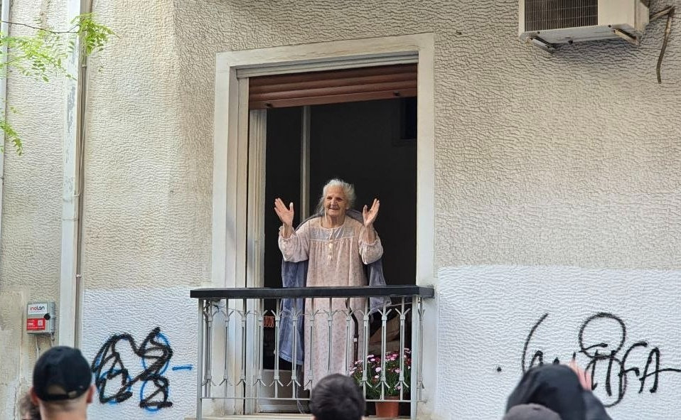 Η πορεία στους δρόμους των Αμπελοκήπων βρήκε μερίδα των κατοίκων στις πόρτες και τα μπαλκόνια τους, με περιέργεια σε έναν βαθμό, άλλοτε υποστηρικτικά της διαδήλωσης, με πολύ συγκινητική στιγμή μια ηλικιωμένη κυρία, η οποία ακούγοντας αντιφασιστικά συνθήματα, βγήκε στο μπαλκόνι να χαιρετίσει τους διαδηλωτές για να της απευθύνουν με την σειρά τους δεκάδες από αυτούς χαιρετισμό, μια καλησπέρα ή ένα «γεια σου γιαγιά».