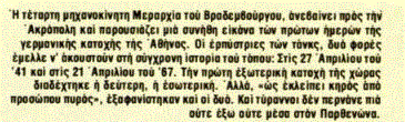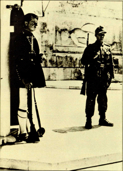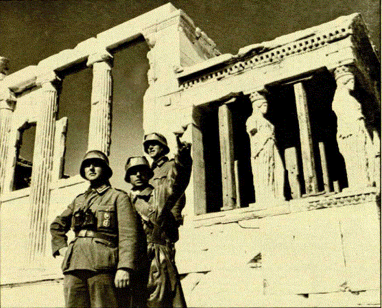 Όλες οι φωτογραφίες του παρόντος άρθρου προέρχονται από το τεύχος του «Ταχυδρόμου» που είχε κυκλοφορήσει στις 24 Ιανουαρίου 1980 (το σχετικό δημοσίευμα, με την υπογραφή του αειμνήστου δημοσιογράφου και συγγραφέα Βάσου Μαθιόπουλου, έφερε τον τίτλο «Οι Γερμανοί μπαίνουν στην Αθήνα»). Στην κεντρική φωτογραφία, γερμανοί στρατιωτικοί μπροστά στις Καρυάτιδες.