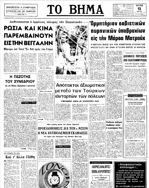 «ΤΟ ΒΗΜΑ», 13.4.1971, Ιστορικό Αρχείο «ΤΟ ΒΗΜΑ» & «ΤΑ ΝΕΑ»