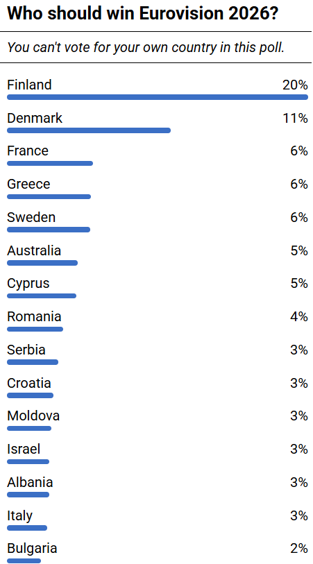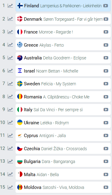 Όπως αναφέραμε παραπάνω, όλα μπορούν να ανατραπούν, εκτός από την πρώτη θέση. Αυτό διότι βάσει της επικρατούσας ατμόσφαιρας τόσο στις ιστοσελίδες των Eurofans όσο και στα Social Media η Φινλανδία απολαμβάνει μια καθολική αποδοχή, την οποία χρόνια έχουμε να δούμε.