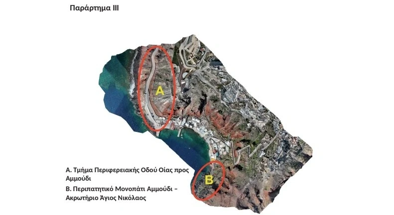 Α. Στη Δημοτική οδό προς Αμμούδι απαγορεύεται η κυκλοφορία και διέλευση οχημάτων, από τη διασταύρωση της περιφερειακής οδού Οίας προς τον λιμένα Αμμούδι (Τμήμα Α, Παράρτημα ΙΙΙ). Η αναστροφή των προσερχόμενων οχημάτων θα γίνεται με κατάλληλη διαμόρφωση της οδού στο ύψος του Δημοτικού Χώρου Στάθμευσης. Της απαγόρευσης αυτής εξαιρούνται οχήματα τροφοδοσίας κατά τις ώρες 05.00 π.μ. έως 10.00 π.μ. και έως 15 επιβατηγά ιδιωτικής χρήσεως αυτοκίνητα έως και 20 θέσεων, τα οποία θα εισέρχονται εκ περιτροπής με μέριμνα του Δήμου Θήρας για τη διευκόλυνση της μετακίνησης των επισκεπτών. Επιτρέπεται η διέλευση οχημάτων με προορισμό προς και από τη νήσο Θηρασιά.