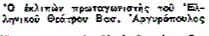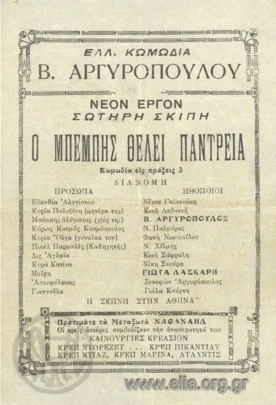 Ένας μεγάλος ακόμα που μας έφυγε. Σα να τους έχουμε πολλούς. Από την πάστα των μεγάλων ήταν πλασμένος ο Βασίλης Αργυρόπουλος. Θα είχε κατακτήσει την παγκόσμια δόξα αν σταδιοδρομούσε σε άλλη χώρα. Αρκέσθηκε στην πικρή δάφνη του τόπου του. Αποσύρεται τώρα αφού επί σαράντα χρόνια σκόρπισε τη χαρά. Αλλά δεν είναι η πρόθεσή μας να προσθέσουμε μια ακόμα νεκρολογία στις τόσες που γράφονται. Θα σταματήσουμε μόνο στο τελευταίο έργο που ο θιασάρχης ανέβασε προχτές στο κρεββάτι του «Ευαγγελισμού» — το μόνο δραματικό έργο που ο σπάταλος αυτός χορηγός του γέλιου αποφάσισε να περιλάβη στο ρεπερτόριό του. «Υστάτη ώρα» πρέπει να είναι ο τίτλος του. Επιτρέψτε να σας επαναλάβω την τελευταία σκηνή της τελευταίας πράξεως του έργου. Η σκηνή, όπως είπαμε, παρουσιάζει το θάλαμο νοσοκομείου. Ο πρωταγωνιστής, δίνοντας τη μάχη με το θάνατο, καλεί την παρτεναίρ του, που ήταν και η σύντροφος της ζωής του, την κρατά από το χέρι και της εμπιστεύεται τη στερνή του θέληση: Να γίνη η κηδεία του από το Μητροπολιτικό ναό. Γιατί εκεί στην πλατεία του ναού —εξηγεί ο Αργυρόπουλος— είν’ ένα καφενεδάκι που το λένε «Πάρος». Σ’ αυτό μαζεύονται οι Παριανοί της Αθήνας. Παριανός και ο καλλιτέχνης, εκεί πήγαινε τα πρώτα χρόνια της νεότητάς του, πριν τον πάρη η διασημότητα στον τροχό της, κι’ έπαιζε κοντσίνα με τους συμπατριώτες του. Από κει να τον περάσουν, κι’ αν φθάνουν στην ακοή των νεκρών οι ψίθυροι των ζωντανών, από των πατριωτών του τα χείλη ν’ ακούση τον ύστατο χαιρετισμό.