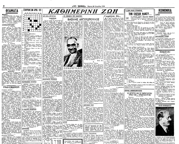 «ΤΟ ΒΗΜΑ», 2.5.1953, Ιστορικό Αρχείο «ΤΟ ΒΗΜΑ» & «ΤΑ ΝΕΑ»