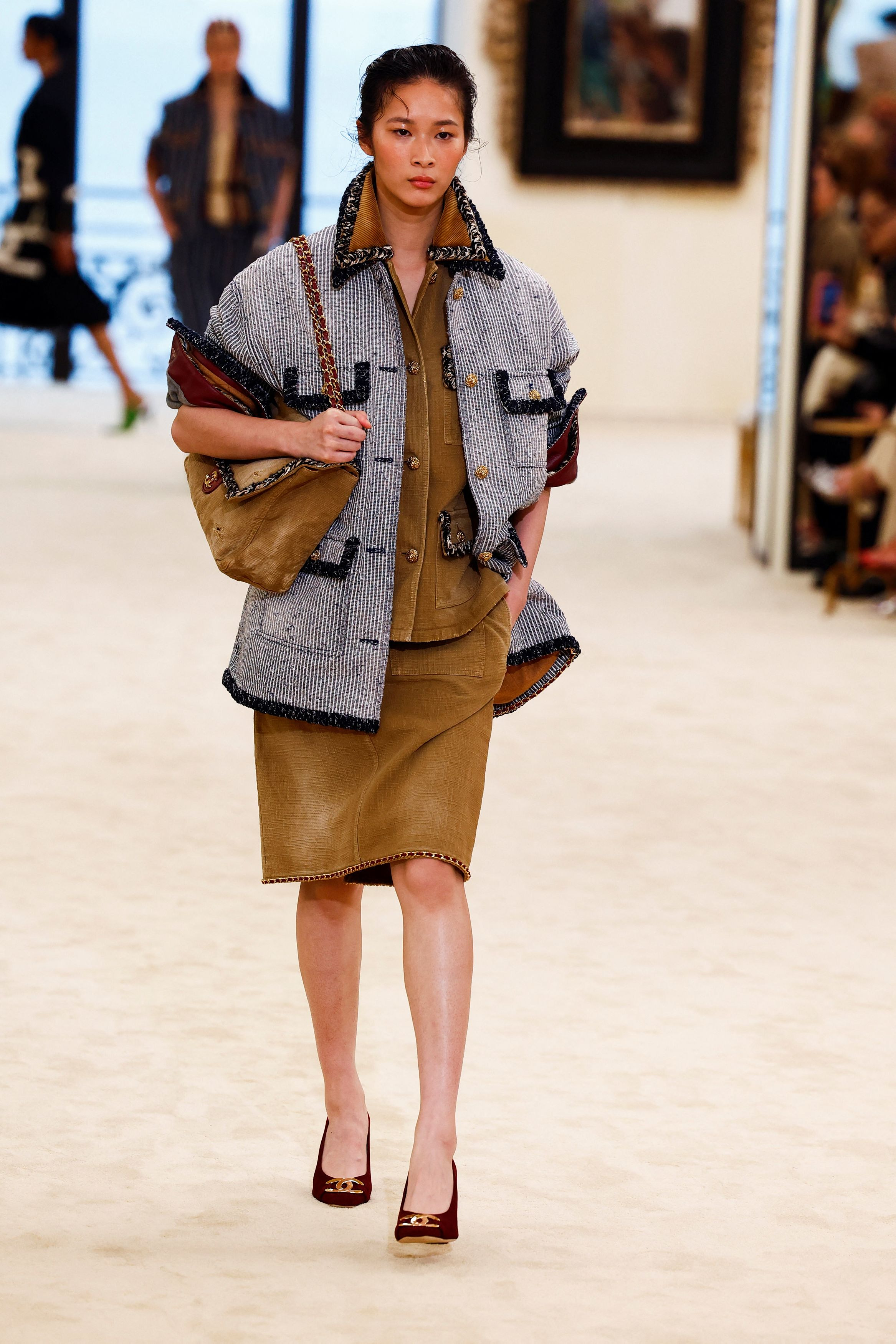 Όχι, όπως φαίνεται, από τον Blazy. Και αυτό το μήνυμα διατρέχει την κολεξιόν Cruise 26/27. Για τη συλλογή, γράφει: «Η Chanel βρήκε στο Μπιαρίτς διαφορετικούς τρόπους ύπαρξης και αντίληψης, κίνησης και ελευθερίας. Τους έκανε το βάθρο της μόδας της.