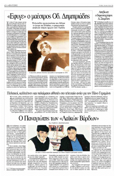 Η αποτίμηση της προσφοράς του, φυσικά, δεν είναι δυνατόν να γίνει στον περιορισμένο χρόνο και χώρο που διατίθεται αυτή την ώρα. Ας μου επιτραπεί να κλείσω αυτό το κειμενάκι με κάτι προσωπικό, ότι δηλαδή μετά τον θάνατο, πριν από αρκετά χρόνια, του Αντώνη Κορόβηλα (σ.σ. καταξιωμένος δημοσιογράφος, ο οποίος απεβίωσε το Σεπτέμβριο του 1989), η απώλεια τώρα και του Παναγιώτη κάνει την παλιά παρέα όχι απλώς πιο φτωχή, αλλά ορφανή από τους δυο καλύτερους ανθρώπους.