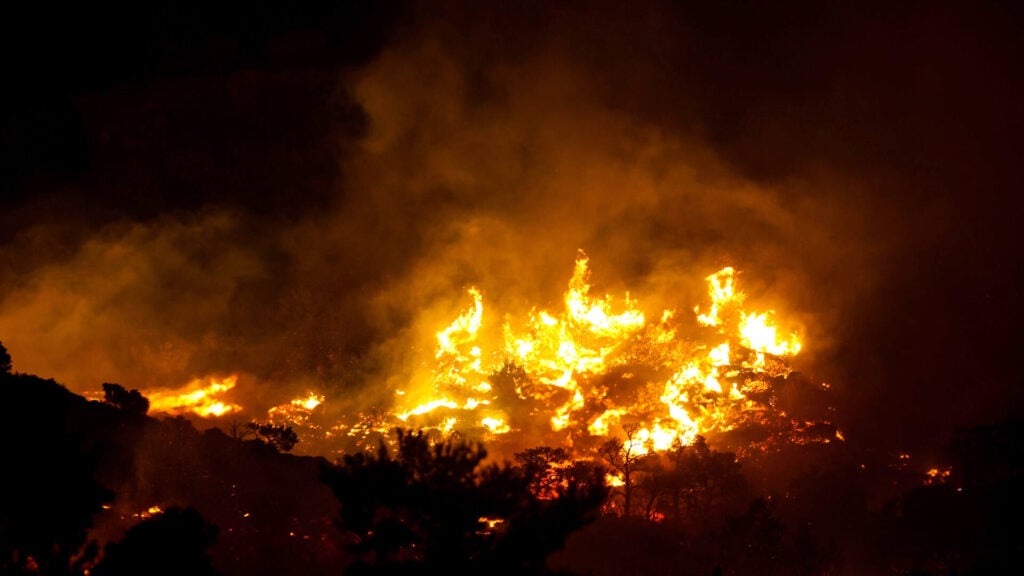 Συναγερμός στην Πυροσβεστική για φωτιά σε άλσος πίσω από τον Ιερό Ναό του Αγίου Ιωάννη και κοντά στον σταθμό του Μετρό.