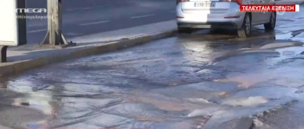 Οι δρόμοι μετατράπηκαν σε ποτάμια στο Κερατσίνι όταν έσπασε αγωγός της ΕΥΔΑΠ στην οδό Γαληνού