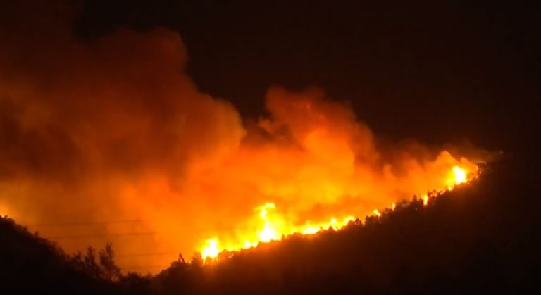 Επιχειρούν 25 πυροσβέστες, μία ομάδα πεζοπόρου της 7ης ΕΜΟΔΕ, επτά οχήματα, ενώ ρίψεις στη φωτιά πραγματοποιεί ελικόπτερο