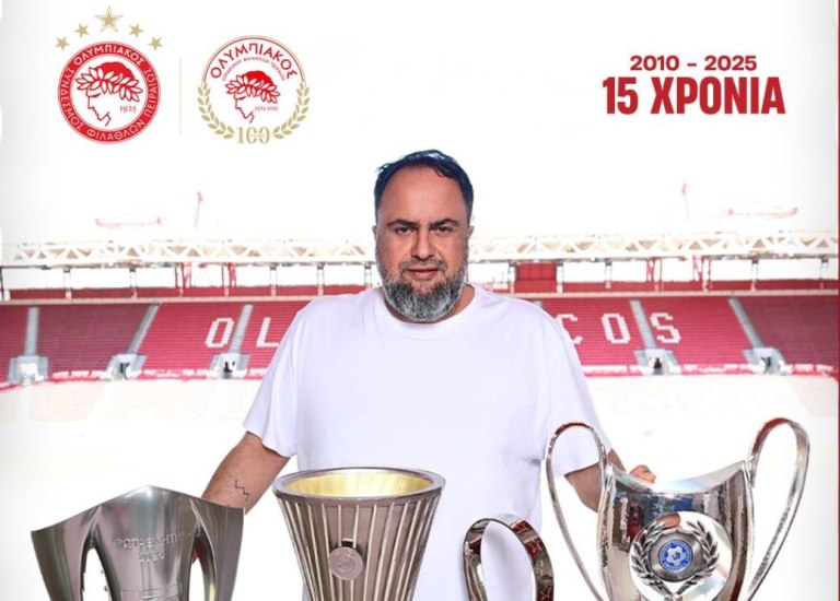 Ο Βαγγέλης Μαρινάκης έφτασε τους 19 τίτλους και έγινε ο πρόεδρος με τους περισσότερους τίτλους στην ιστορία του ελληνικού ποδοσφαίρου – Η ανάρτηση της ΠΑΕ.