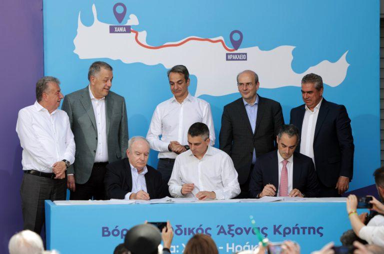 Σε ειδική εκδήλωση στο Ηράκλειο Κρήτης υπεγράφη ανάμεσα στον Γιώργο Περιστέρη και τον Χρίστο Δήμα η σύμβαση ύψους 1,8 δισ. ευρώ για τη μελέτη, χρηματοδότηση και κατασκευή του τμήματος του ΒΟΑΚ, Ηράκλειο – Χανιά
