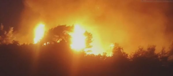 Πύρινη κόλαση στα Δερβενοχώρια, με τη φωτιά να καίει ανεξέλεγκτη.