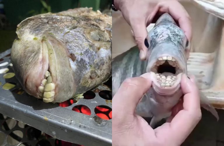Στο βίντεο φαίνεται καθαρά μια σειρά από δόντια καθώς κατεβάζει το κάτω χείλος του ψαριού - «Μοιάζουν με ανθρώπινα», λέει σοκαρισμένη η γυναίκα από τη Βραζιλία