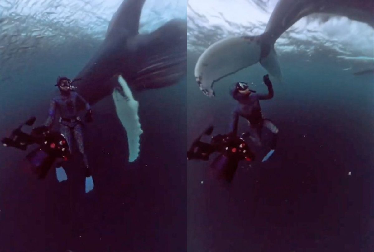 Στα πλάνα που μοιράστηκε στα social media, ο δύτης περιέγραψε τη στιγμή με τους «ευγενικούς γίγαντες» ως «απίστευτη»
