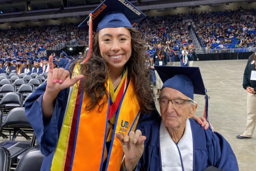 Ο παππούς κατάφερε να τελειώσει το πανεπιστήμιο στα 88 του. Η εγγονή του τελείωσε το ίδιο πανεπιστήμιο στα 23 της. Και οι δυο πήραν το πτυχίο την ίδια μέρα.