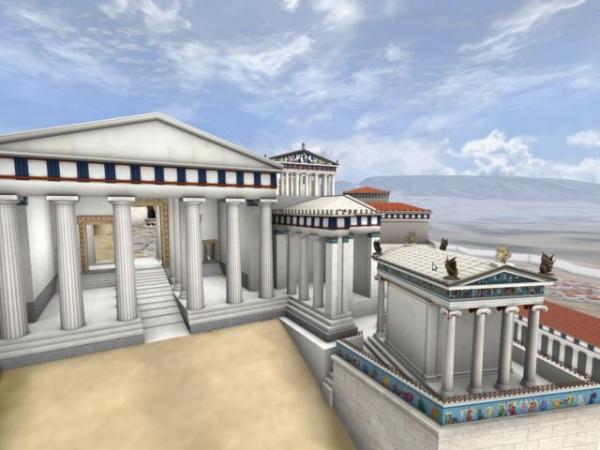Με τη χρήση των νέων τεχνολογιών, ο θεατής θα έχει την ευκαιρία να θαυμάσει τα πιο περίπλοκα, από αρχιτεκτονικής άποψης, κτίρια της Ακρόπολης, όπως τον Παρθενώνα, το Ερεχθείο, τον Ναό της Απτέρου Νίκης, τα Προπύλαια, αλλά και τα αγάλματα που τα διακοσμούσαν σε 3D και στα φυσικά τους χρώματα, όπως ήταν την εποχή που δημιουργήθηκαν.