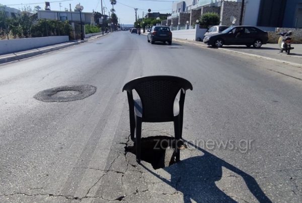 Μία τρύπα σε κεντρικό δρόμο των Χανίων... κινητοποίησε την εφευρετικότητα των περιοίκων.