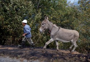 Γαϊδουράκια φορτωμένα με οικοδομικά υλικά - Σοκάρουν οι εικόνες από τη Σαντορίνη