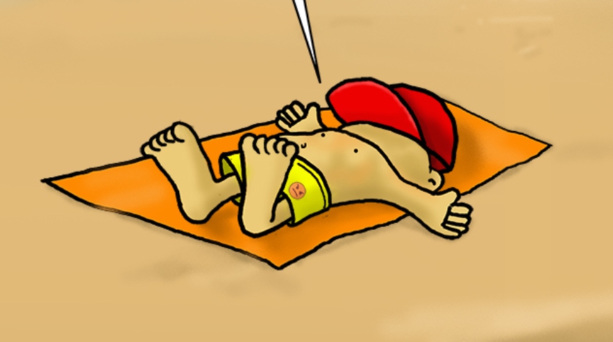 Ο Αρκάς σκιτσάρει τον Θανασάκη να λέει πονηρά «σε βλέπω!» ενώ κολυμπάει με τα πορτοκαλί «μπρατσάκια» του στα ρηχά. Σε ποιον το λέει;