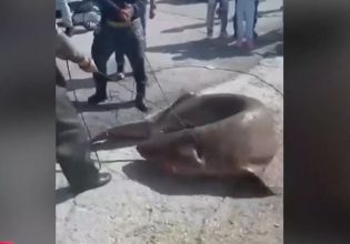 Ο γκρίζος καρχαρίας που ζει στα 100 μέτρα βάθος εντοπίστηκε να κολυμπά στα ρηχά από κατοίκους - Πιθανόν να παρασύρθηκε από από τους ισχυρούς ανέμους και να έχασε τον προσανατολισμό του
