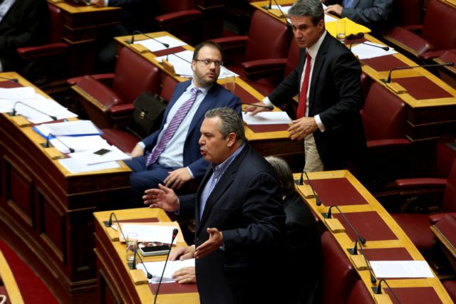 Με ενστάσεις της Αντιπολίτευσης επί της διαδικασίας συζητείται στην Ολομέλεια το νομοσχέδιο του υπουργείου Άμυνας, η οποία αφορά κυρώσεις συμβάσεων Ελλάδος-Ισραήλ-Αιγύπτου. Στο νομοσχέδιο έχουν ενσωματωθεί οι τροπολογίες για τα προαπαιτούμενα της αξιολόγησης. Ο Π.Καμμένος αναφέρθηκε στα ειδικά μισθολόγια.