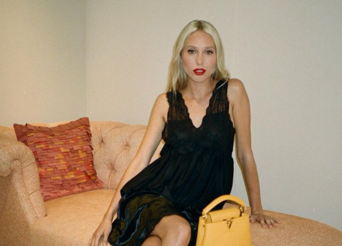 Η Ευγενία Νιάρχου επέλεξε ένα εξαιρετικό μίντι φλοράλ φόρεμα της σχεδιάστριας Emilia Wickstead σε ζωηρό πορτοκαλί χρώμα.