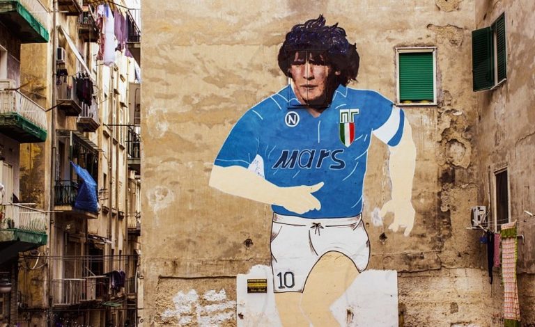 Η τοιχογραφία του Μαραντόνα στην ισπανική συνοικία της Νάπολης συμβολίζει τις καλύτερες και τις χειρότερες στιγμές της.