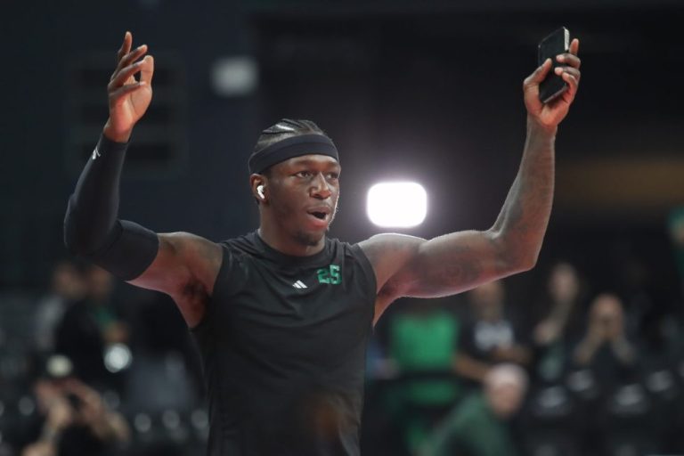 Ο Κέντρικ Ναν παρέλαβε το βραβείο του πολυτιμότερου της σεζόν 2024-25 στην Euroleague, από τον πρόεδρο της διοργανώτριας αρχής, Ντέγιαν Μποντιρόγκα, πριν την έναρξη της αναμέτρησης με την Εφές.