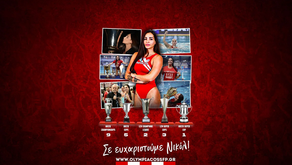 Ο Ερασιτέχνης Ολυμπιακός είπε το δικό του αντίο και «ευχαριστώ» στη Νικόλ Ελευθεριάδου, που ανακοίνωσε την απόσυρσή της από το πόλο.