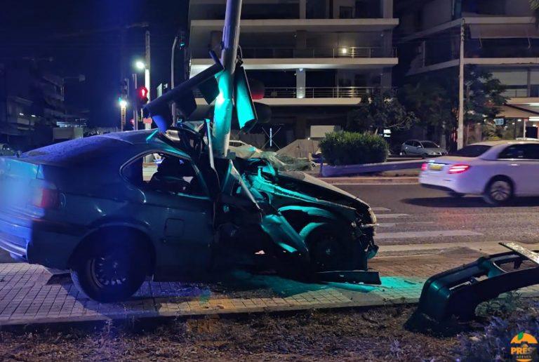 Το τροχαίο σημειώθηκε τα ξημερώματα στην παραλιακή στο ρεύμα προς Γλυφάδα - Το όχημα έπεσε με μεγάλη ταχύτητα σε φανάρι και χτύπησε πλαγιομετωπικά - Βίντεο καταγράφει τη στιγμή της σύγκρουσης